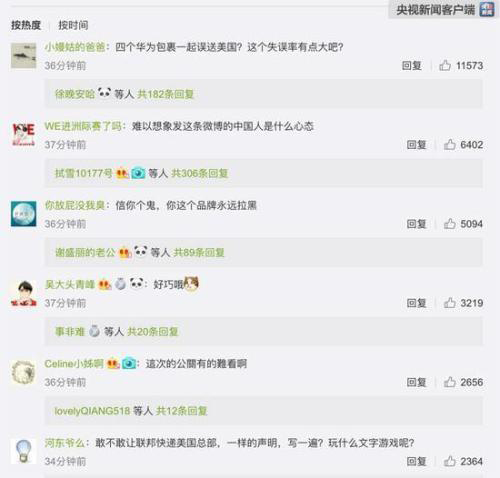 有网友留言表示,联邦快递每天运送1500万个包裹,偏偏4个华为的包裹被“误运”,这个错误是不是太“精准”了?