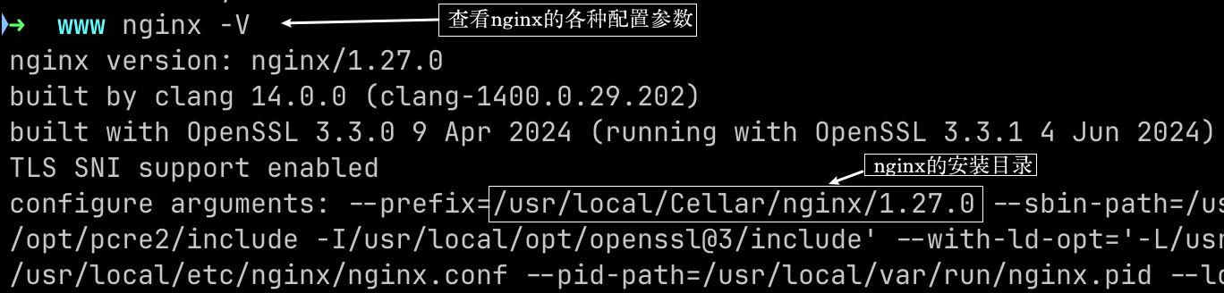 $ brew install nginx # 查看版本 $ nginx -v nginx version: nginx/1.27.0